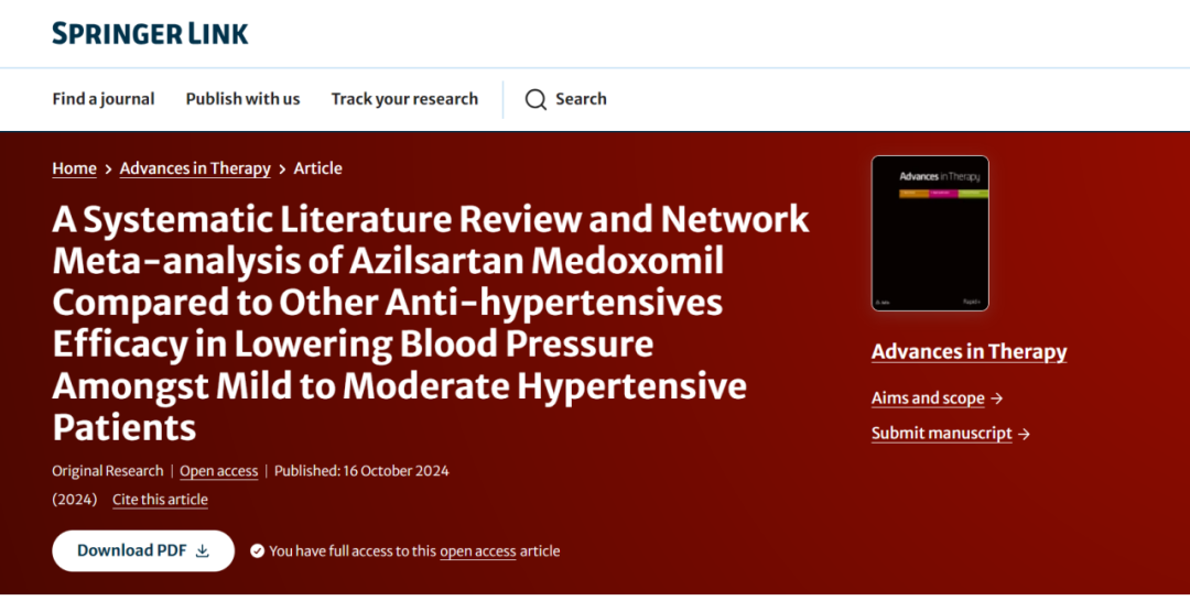 参考文献:Qian JY. A systematic literature review and network meta-analysis of azilsartan medoxomil compared to other anti-hypertensives efficacy in lowering blood pressure amongst mild to moderate hypertensive patients (https://doi.org/10.1007/s12325-024-02997-5).